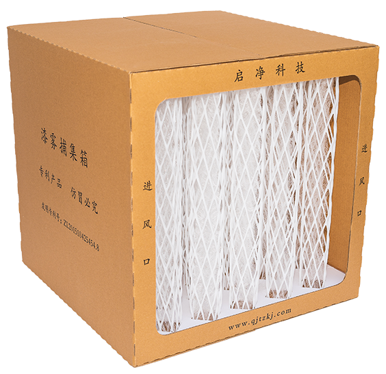 空氣及其攜帶的漆霧在空氣導(dǎo)流通道的引導(dǎo)下進(jìn)入漆霧捕集箱,空氣經(jīng)過漆霧捕集箱的過程中,漆霧被漆霧捕集箱捕集,潔凈的空氣由漆霧捕集箱的出口排出,進(jìn)而進(jìn)入循環(huán)風(fēng)空調(diào)或廢氣處理裝置。